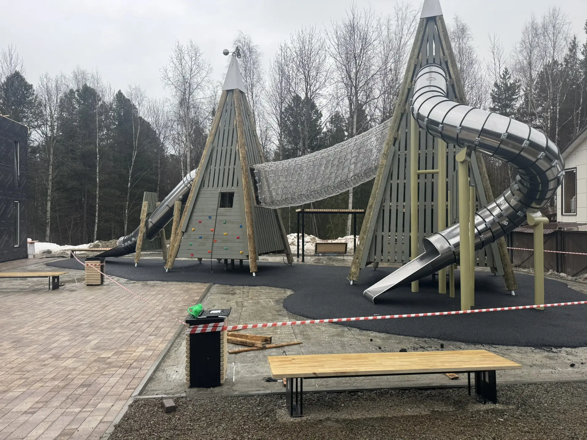 Укладка резинового покрытия на детской площадке